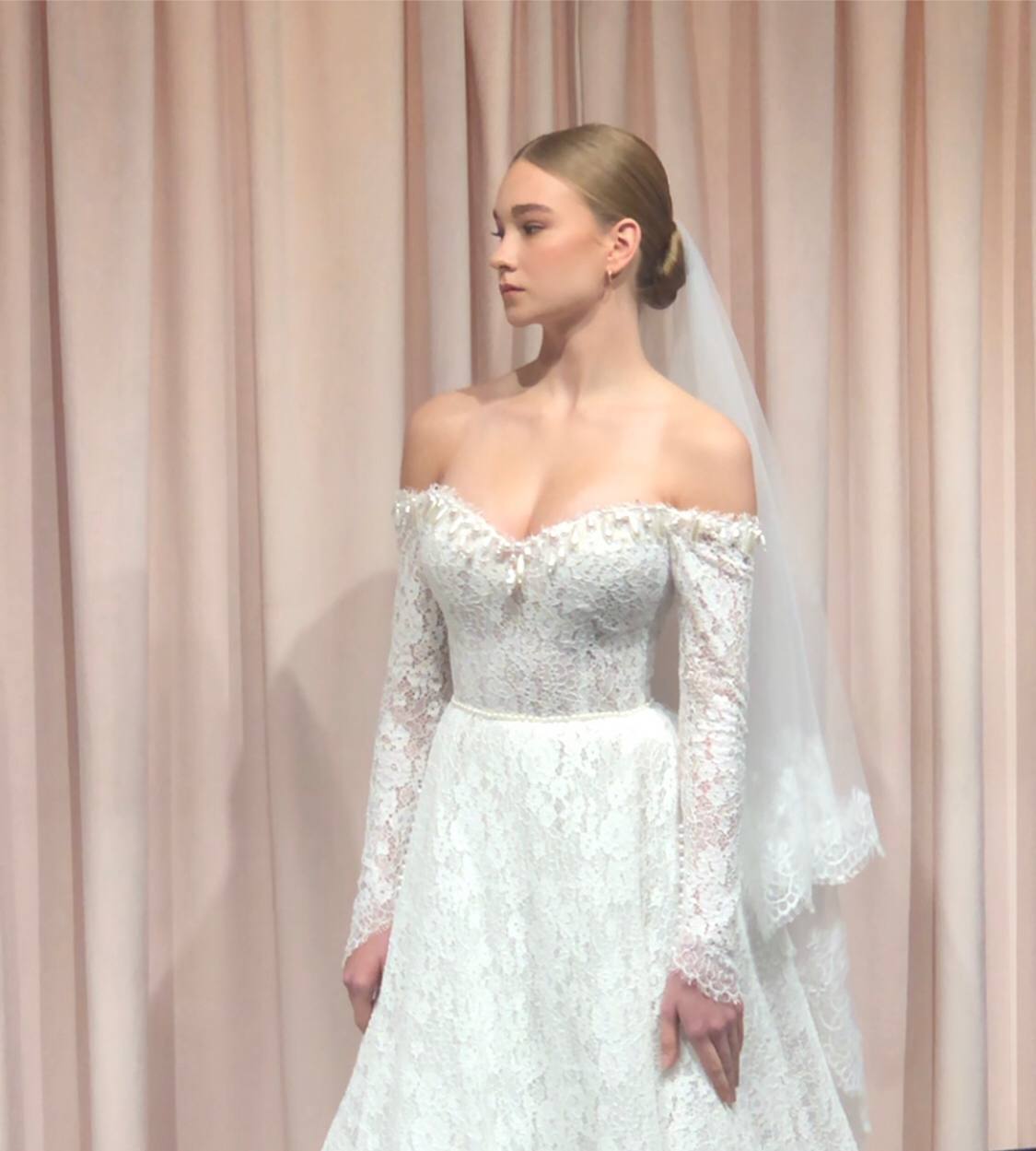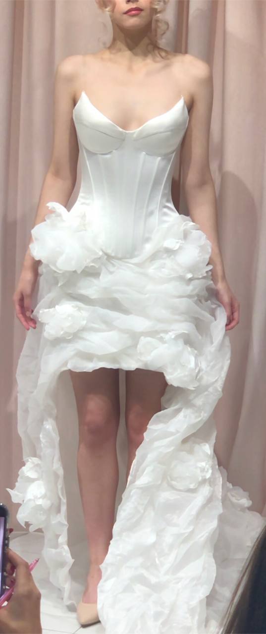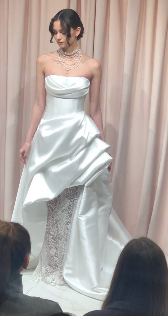 Баска вновь возвращается в свадебные платья, добавляя интересные акценты к силуэту. Она прекрасно сочетается с акцентной талией и создает изысканный образ, который будет актуален в этом сезоне.