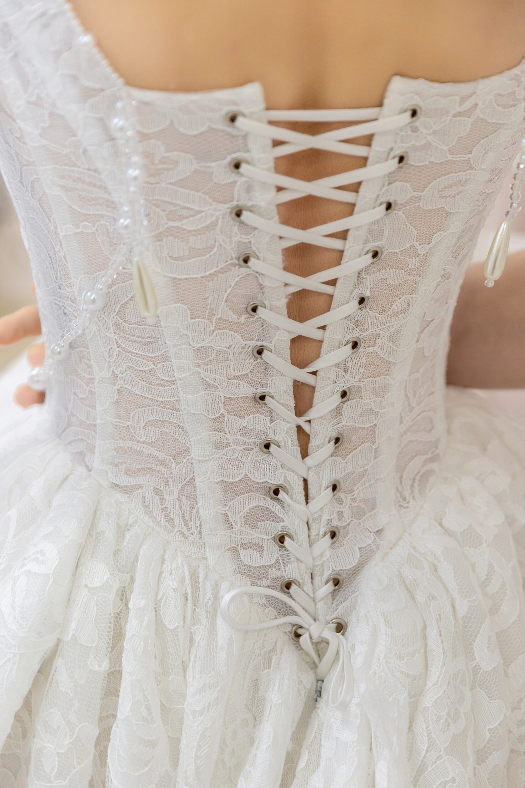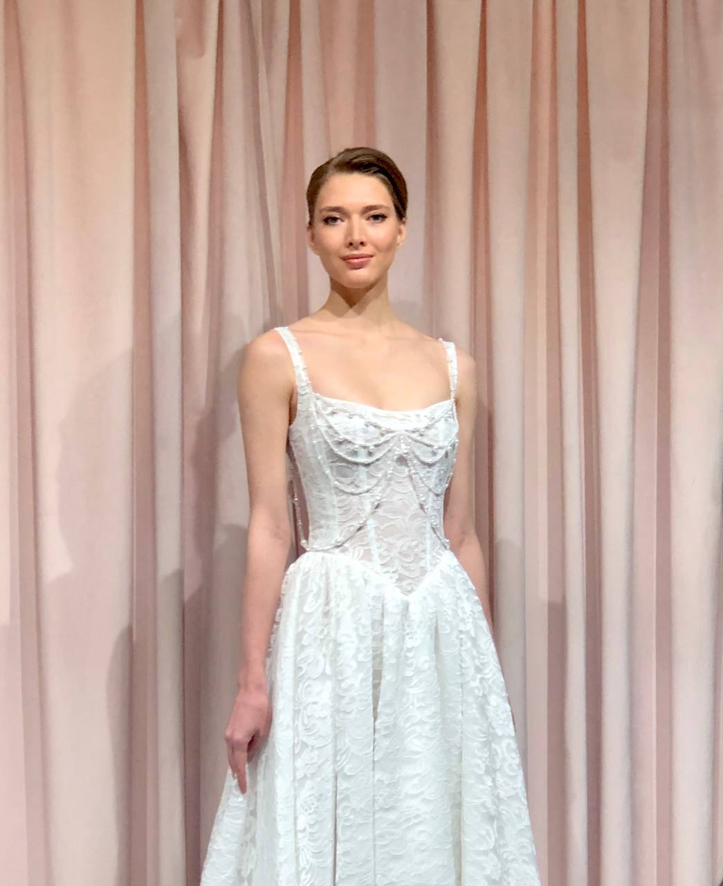 Линия талии в платьях 2026 года выходит за рамки традиционного прямого силуэта. Корсеты все чаще выполняются в форме песочных часов, что отсылает нас к эпохе Возрождения и Барокко. Даже при прямой линии талии мы видим интересные обыгрывания, такие как жемчужные нити, подчеркивающие талию и создающие эффектный акцент.